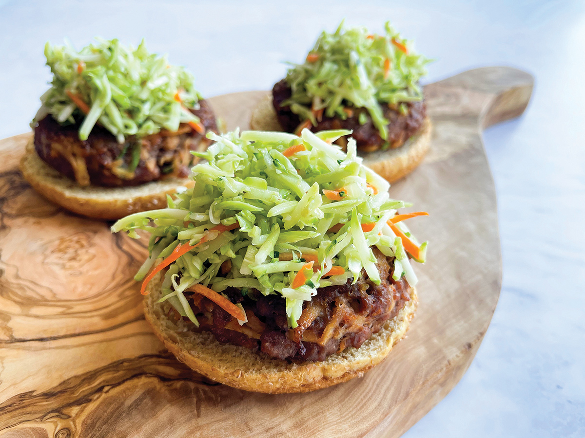 Trying to eat less meat? With plant-based options like Beyond Meat® and Impossible™ foods now at your local store, you don’t need to cut back on juicy burgers. These patties crowned with crunchy slaw are so delish, you won’t miss the beef!