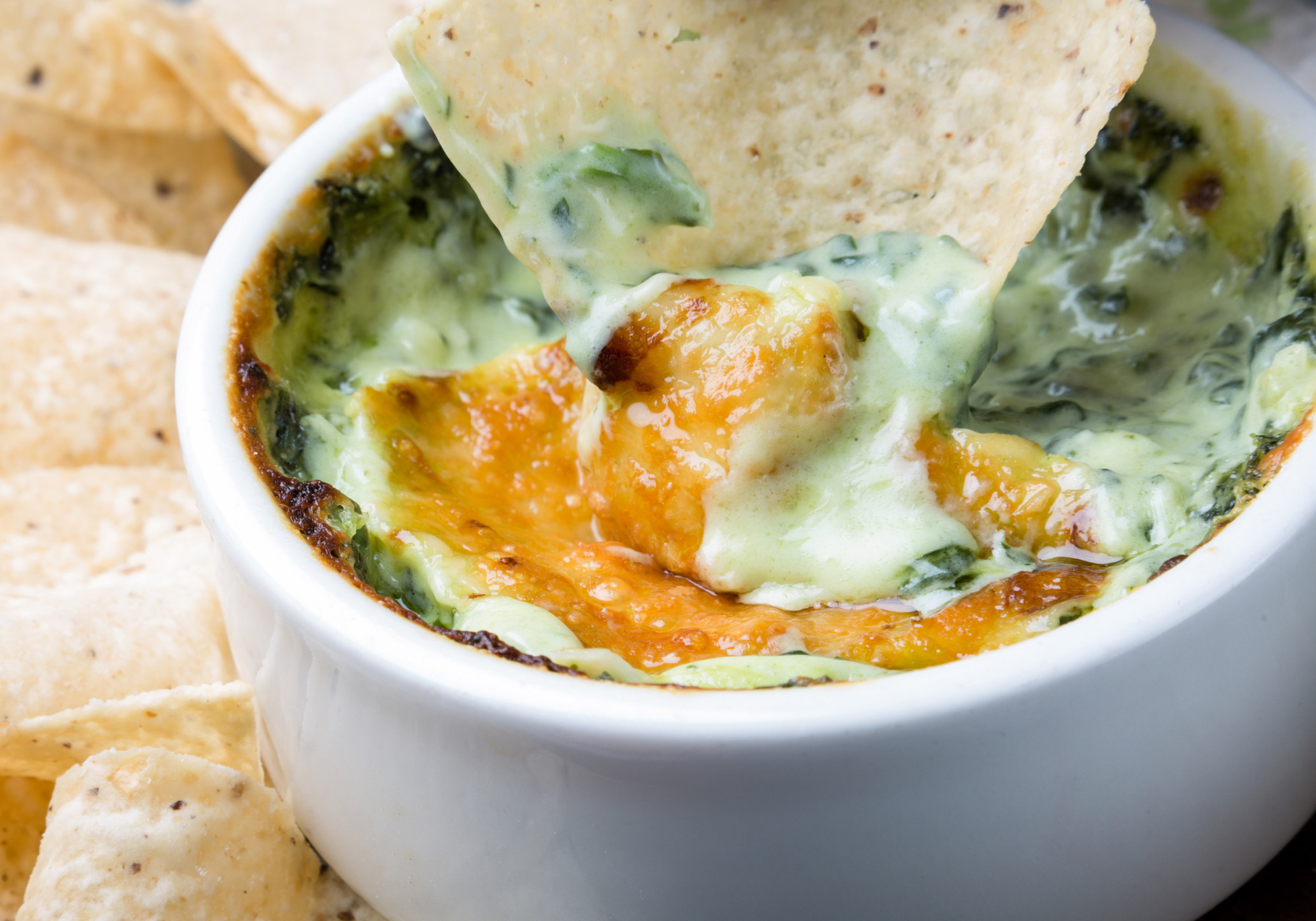 - Spoon into an 11 x 7-inch baking dish coated with cooking spray. Top with remaining 1/2 cup Cheddar cheese. Bake at 350° for 18 to 20 minutes or until thoroughly heated. Serve with baked tortilla chips.