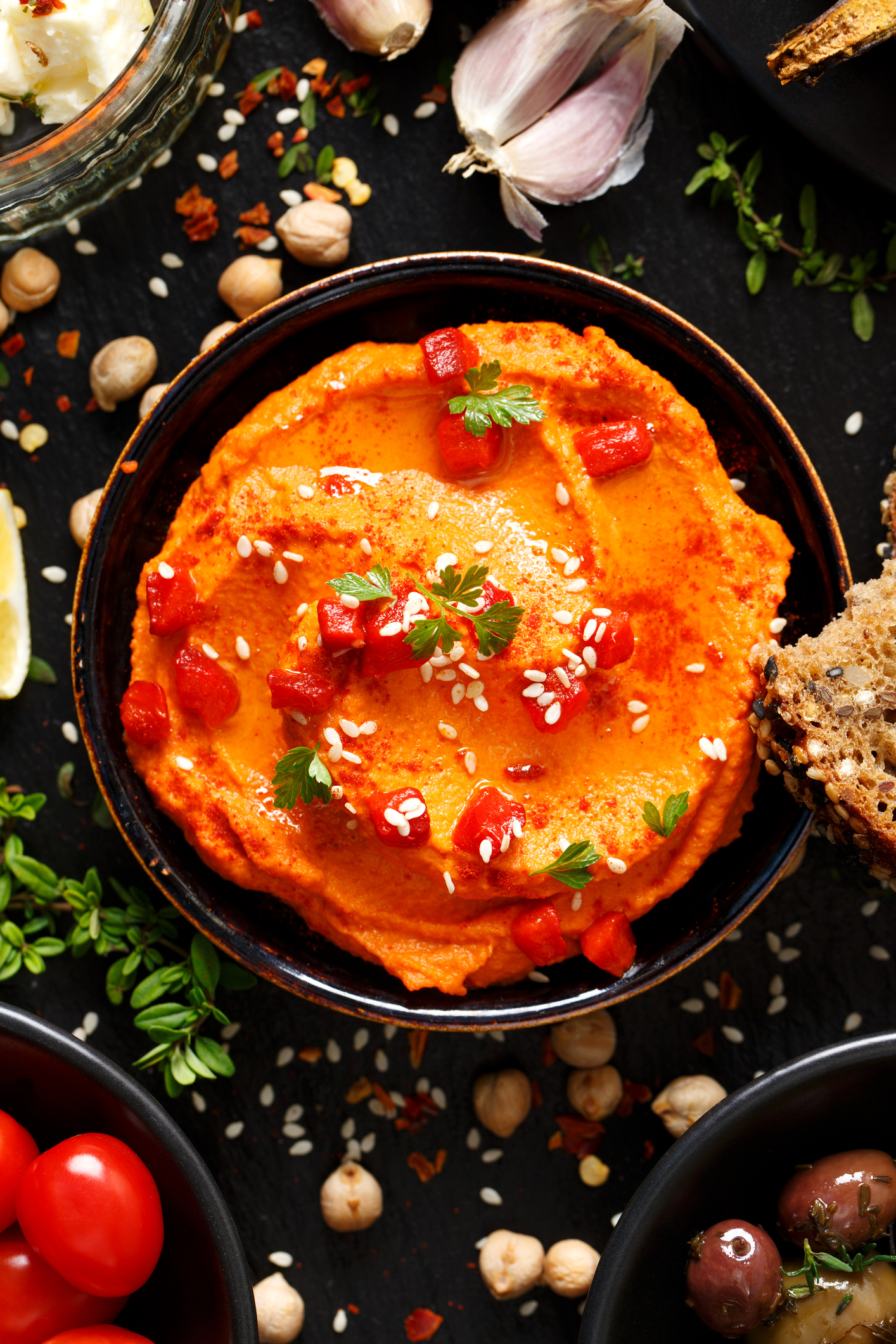 Smooth, smoky, and full of flavor, this roasted red pepper hummus adds a vibrant twist to any snack or spread.