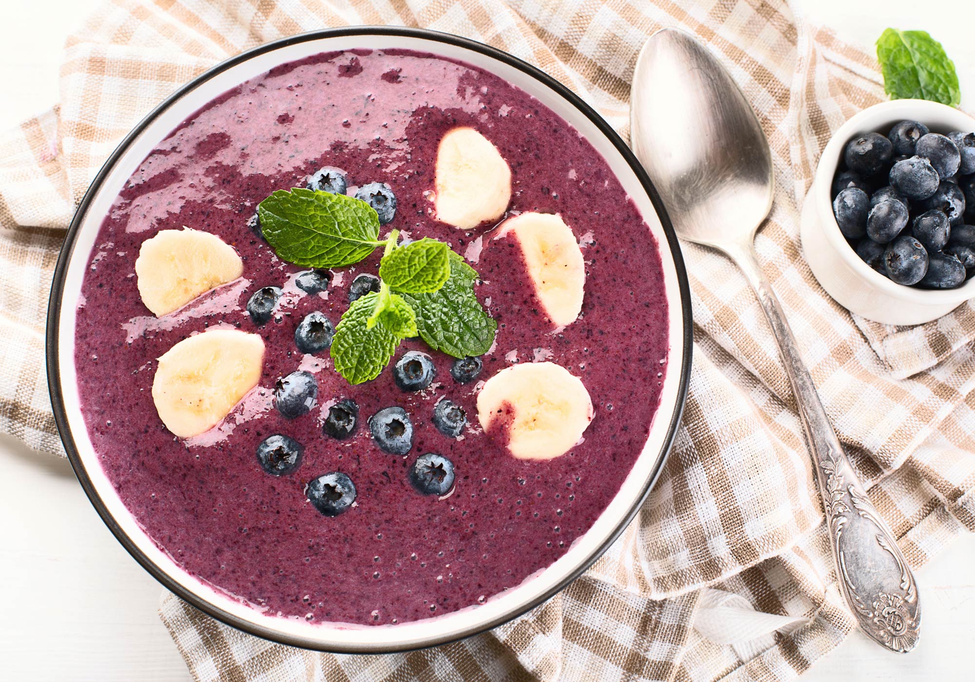 - Serve in a big bowl with your favorite toppings. Here are some of our topping ideas: sliced bananas, berries, kiwi, mango, pineapple, chia seeds, granola, dried fruit such as dates or goji berries, nut butter, carob chips, coconut flakes.