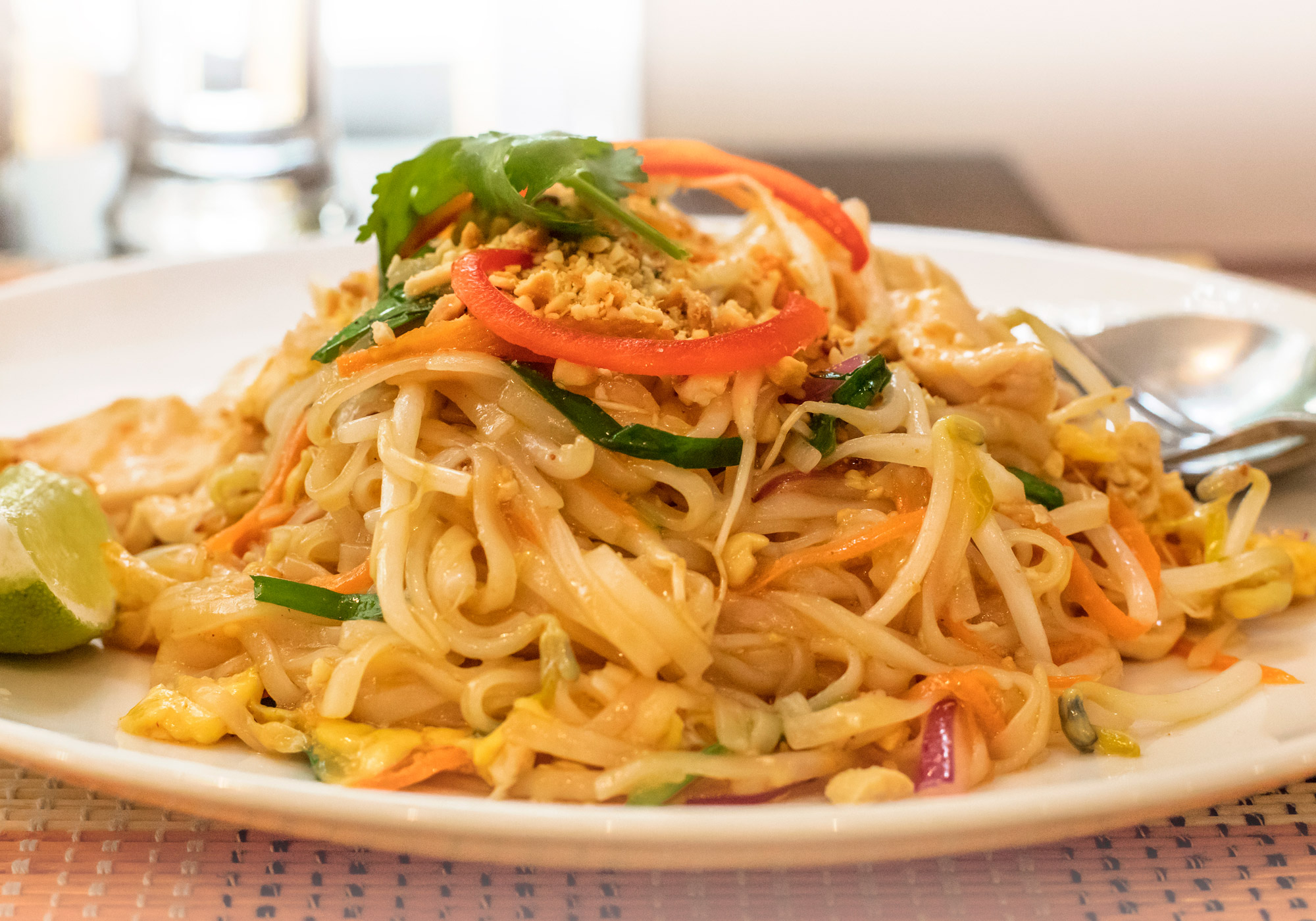 chopped peanuts, thinly sliced scallions, and minced cilantro, optional