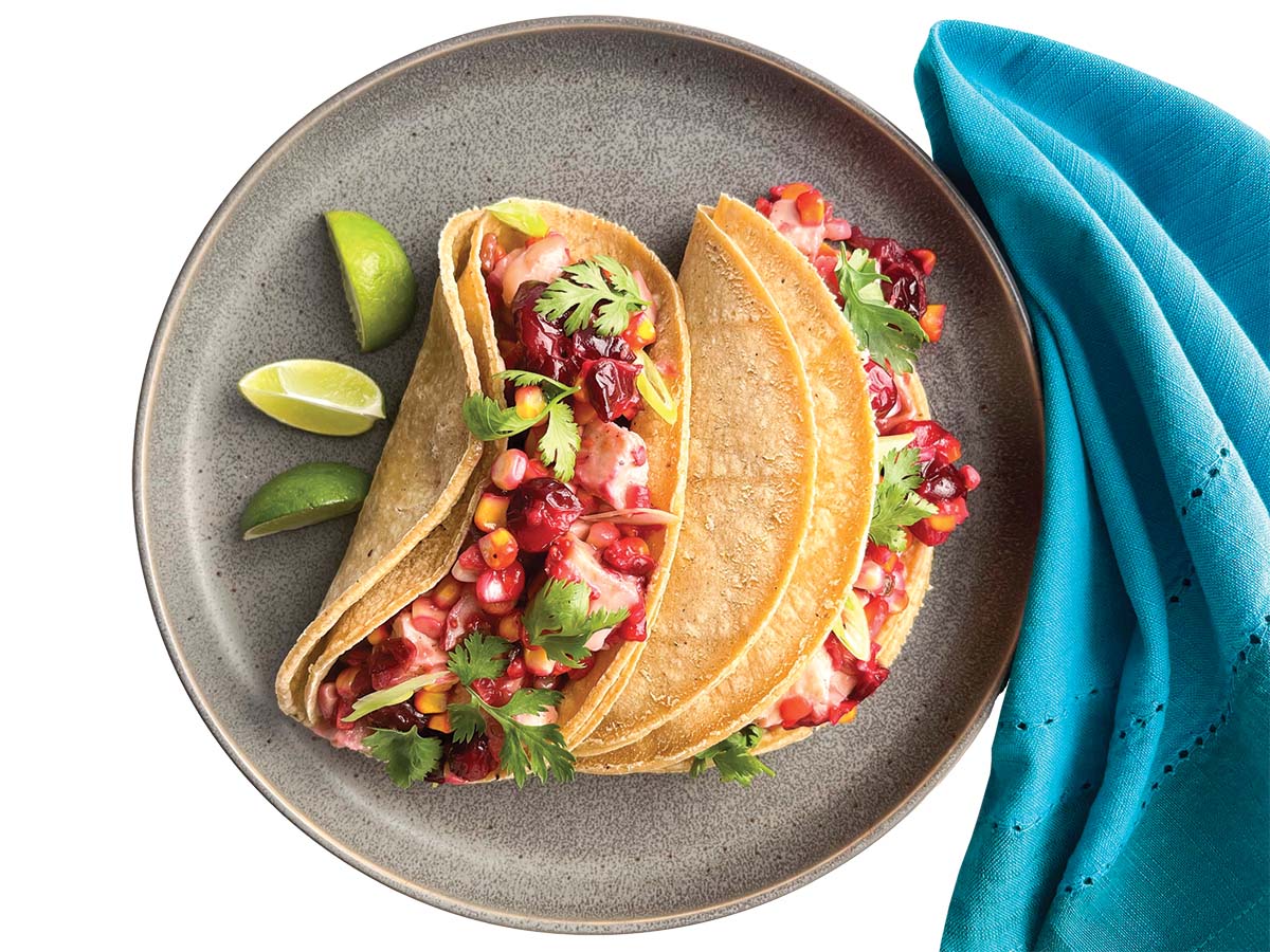 Leftovers from your Thanksgiving feast taste twice as delicious mixed with warm cranberry salsa and tucked in corn tortillas.
