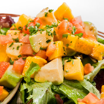 - Put all of the ingredients into a large serving bowl and toss well to combine. Season and serve immediately.