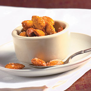 - Warm honey and crushed red pepper in a large skillet over medium heat 1 minute. Stir in almonds. Remove from heat and spread almonds in a single layer on a baking sheet coated with cooking spray. Bake at 325° for 18 minutes; cool 2 to 3 minutes. (Honey mixture will still be slightly sticky.)