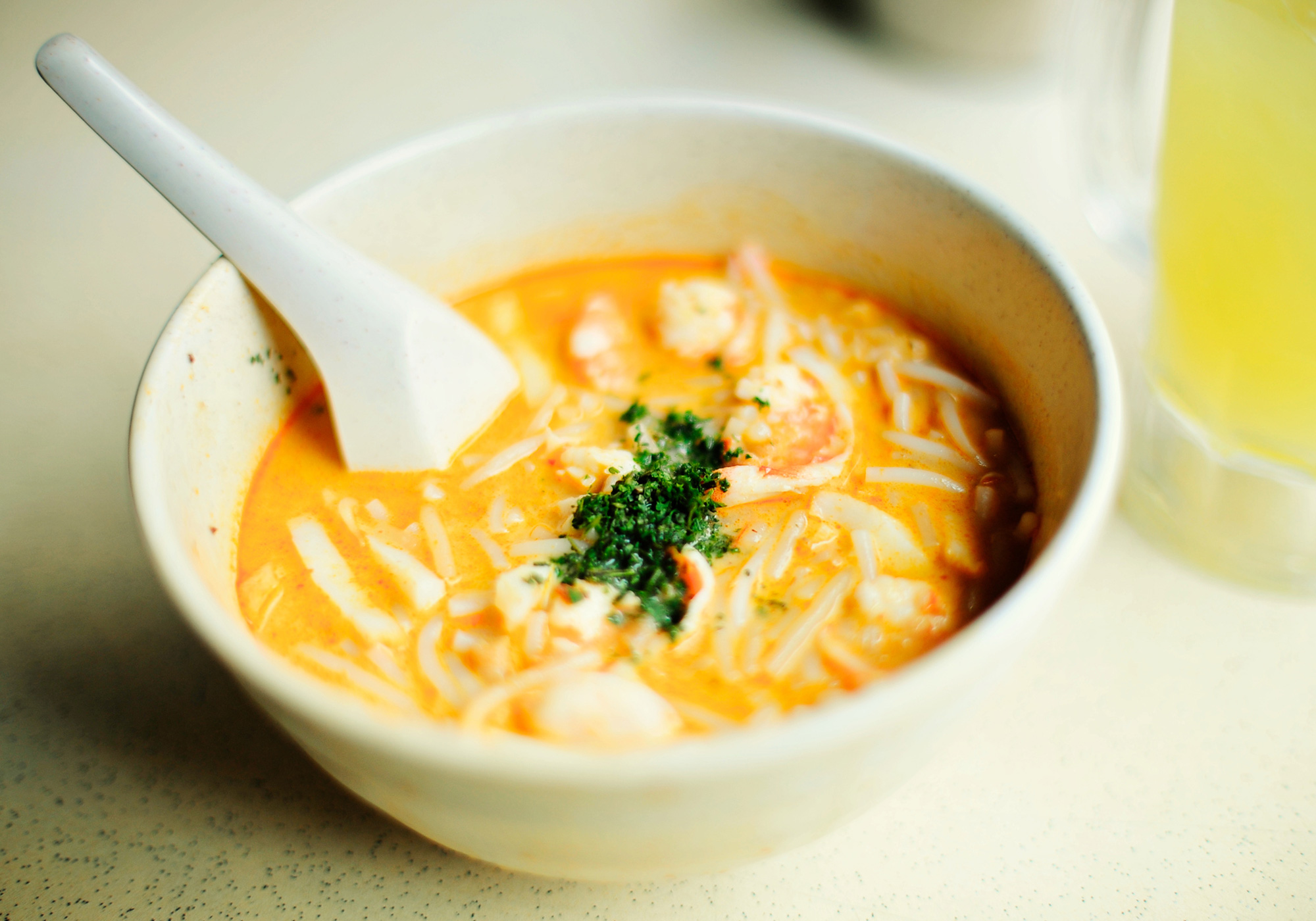 - Heat the oil in a large soup pot over medium-high heat. Add the curry paste, ginger, lemongrass, and garlic and sauté for 2 minutes. Add the bean sprouts and bok choy and sauté for an additional 2 minutes. Add the broth and coconut milk and bring mixture to a boil, then reduce to a simmer to keep warm.